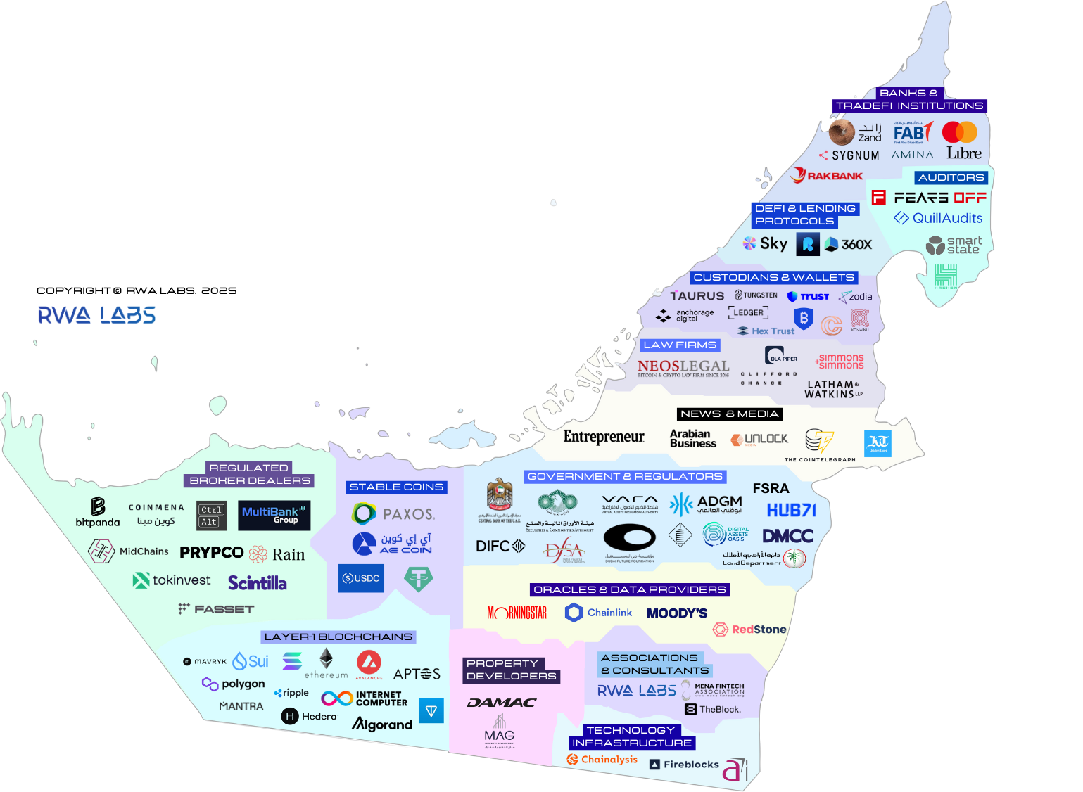 THE RWA ECOSYSTEM MAP SHOWCASES KEY UAE – BASED PLATFORMS, PROTOCOLS, CUSTODIANS, AND SERVICE PROVIDERS DRIVING SECURE, COMPLIANT, AND EFFICIENT TOKENIZED ASSET ADOPTION.
